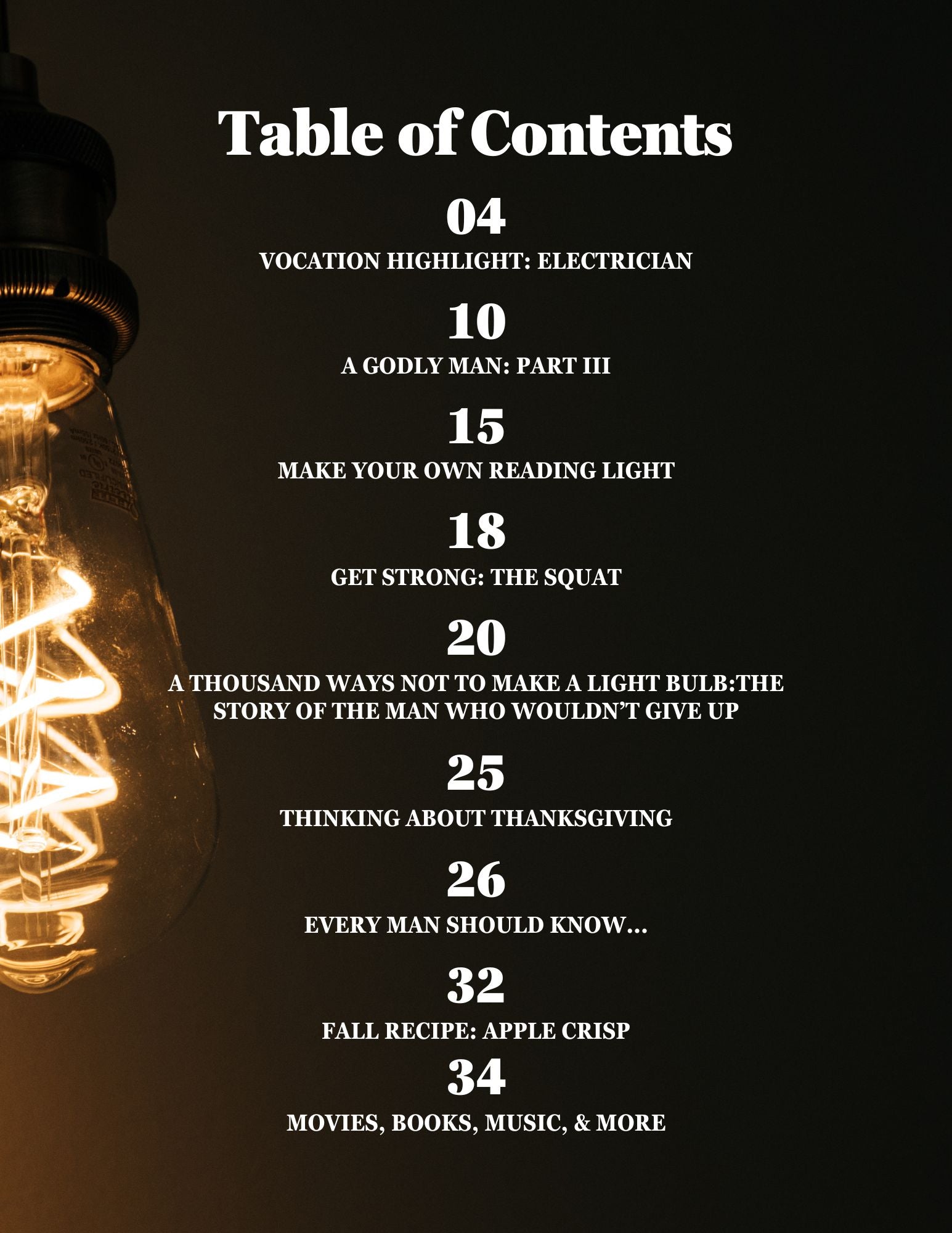 Started by a husband and wife with three boys (and one girl), Young Man Magazine exists to assist families in cultivating virtuous Christian young men; men of courage, compassion, wisdom, and grit. We write from a biblical worldview and send six issues each year filled with stories, how-to's and encouragement for the young man in your life.